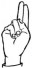 На ћирилици написано САНДРА ГРУБНИЋ састоји се из 13 слова [?]. Исписано ћириличном једноручном азбуком за глувонеме: